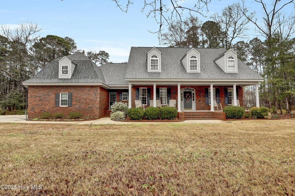 Welcome to this beautiful, stately brick home in the prestigious Highland Forest community. Greeted by sidewalks & mature trees surrounding the area, this home offers serenity you deserve! Inside discover spacious 9-foot ceilings throughout the ground floor, enhancing the grandeur of this home. The bright, wide foyer leads you to formal living & dining rooms, setting the stage for elegant gatherings. The large central family room is a true centerpiece, featuring a real brick wood burning fireplace. French doors on either side of the windowed wall open to a huge wood deck, seamlessly connecting indoor & outdoor living spaces. The great room flows into a large, open kitchen complete w/ breakfast area, perfect for entertaining. Custom-built solid oak cabinets highlight the kitchen & continue throughout the home. The main-level primary suite includes French doors leading to the deck & an 8x13 primary bath with a double vanity, garden tub, shower, & oversized WIC. Upstairs, 3 generously sized bedrooms each feature large WIC. A Jack & Jill bath connects 2 guest rooms. Full bath serves the 4th guest room. A large bonus room upstairs is versatile & ideal for a guest room, office, rec room, or gym. Just 3 steps up from the bonus room, the hallway overlooks the kitchen & great room, adding to the home's open & airy feel. Enjoy NC evenings on the 8x40 covered front porch or relax on the large, shaded wood back deck. The property has a freestanding workshop, a programmable irrigation system, French drains, 2 water heaters (1 upstairs), & high-efficiency HVAC heat pump for the main floor. This remarkable property has 2 upstairs storage rooms (11x24 & 7x10). Don't miss the chance to call this your home, where functionality & comfort await you in every corner. Located near military bases, JCC, mall, & dining. You will find everything you need within reach. NO HOA OR CITY TAXES!!