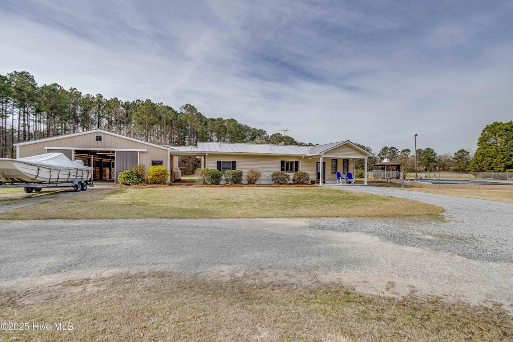 301 Wehoe Road in New Bern, North Carolina, is a single-family residence situated on a substantial 23-acre horse farm with an inground pool, 5 stall barn and tack room and a small office area with a half bath. The home encompasses 1,500 square feet of living space, featuring 2 bedrooms plus an office and 1 bathroom. This exceptional property is perfect for horse enthusiasts who enjoy the lifestyle, professional trainers, or anyone seeking a tranquil countryside retreat with modern conveniences. Enjoy the hot summer days in the backyard with the inground pool and under the expansive patio overlooking pastures. Enough garage spaces for all your equipment and outside toys. This property truly offers the best of both worlds: a peaceful country lifestyle with the space and privacy to create your own farm while being just a short drive away from shopping, golf, and 40 minutes from the beach. Don't miss out on this rare opportunity to own a home designed for animal lovers and those seeking the country life—schedule your private tour today! Share cropping-this season soy bean, percent of crop-normally covers tax bill at end of year. Verbal handshake. Harvest Nov/Dec. Water softener is Kinetico.