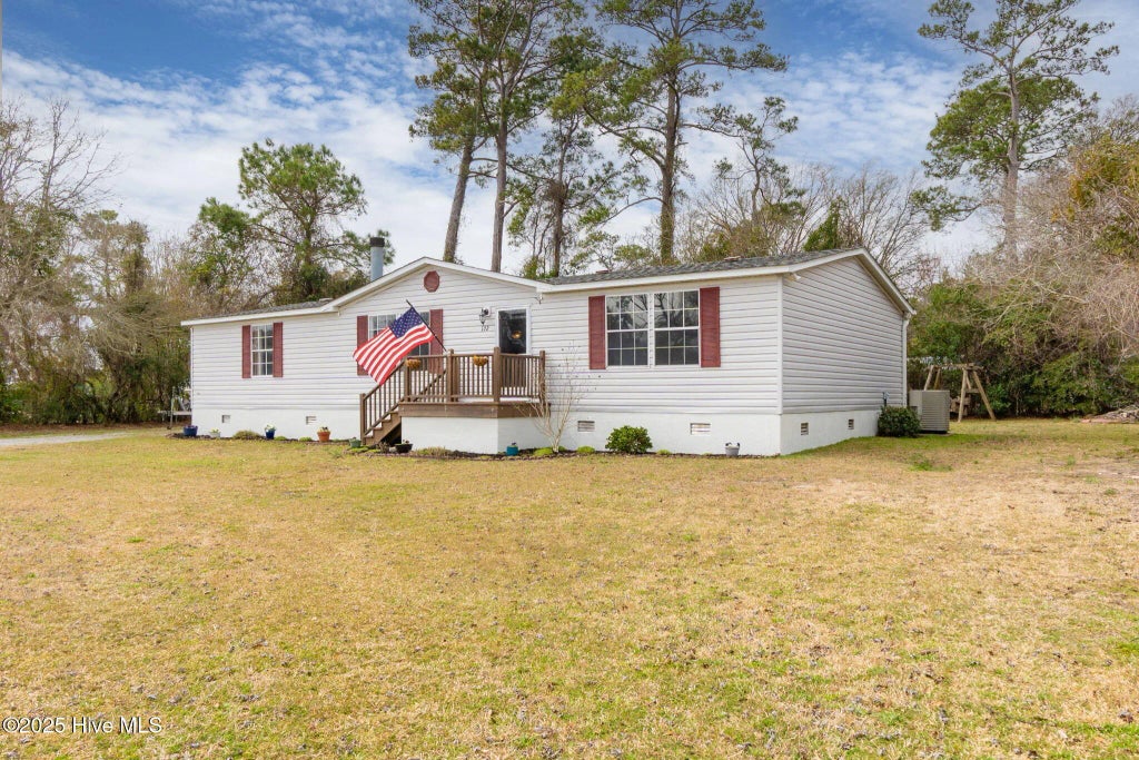 WATERFRONT COMMUNITY WITH A BOAT RAMP, A PIER AND LOADING DOCKS! The best of coastal living awaits you in the Bayshore Park waterfront community just a few blocks from the Intracoastal Waterway in the charming town of Cape Carteret, NC. This home is situated on a large double lot and offers three bedrooms and two full bathrooms with 1,568 SqFt, a detached 2-car garage, and vaulted ceilings. The spacious living room boasts natural light, a built-in entertainment center, and a gas fireplace with built-in shelving. The kitchen offers plenty of cabinets and countertop space for any culinary needs. A pantry and laundry room combo is conveniently located off the kitchen. Between the kitchen and the living room, there is also a formal dining room where you can entertain your family or guests. The primary bedroom has a walk-in closet and a private bathroom with a walk-in shower, a large soaking tub, double vanity, and a linen closet. The additional two bedrooms also have walk-in closets and share a hall bathroom with a tub/shower combo. Enjoy the outdoors in a private backyard with a large screened porch. Relax and unwind with the gentle coastal breezes or get plenty of sunshine on the adjacent open deck. Some of the neighborhood's attractive attributes are no HOA dues, public access to the water, the town's pier, and a picnic area. The neighborhood also offers a boat ramp with loading docks. The boat channel to the ICW is being dredged as needed. This golf-cart-friendly community is located in an award-winning school district. It is only 4 miles from the pristine Emerald Isle beaches, fishing pier, and coastal attractions. This home is perfect for a year-round residence, a vacation home, or an Airbnb. Don't miss your opportunity to own this home and start your coastal adventure. Call us today for more information and your private showing.