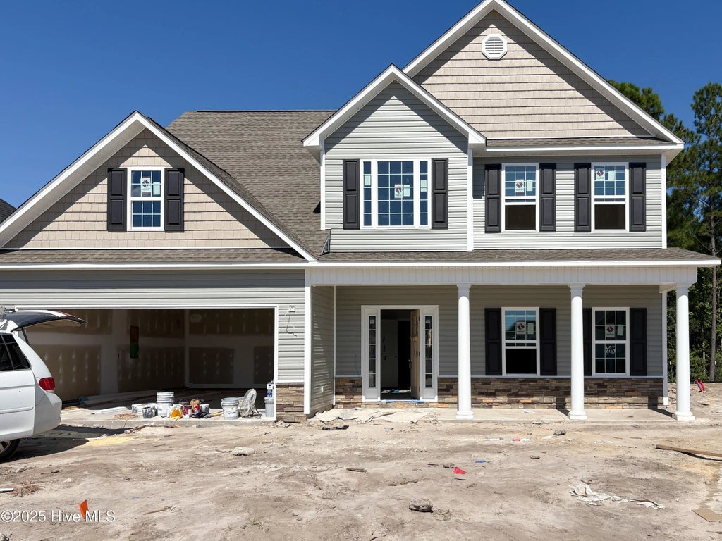 Welcome to the beautiful Catalina floor plan in The Landing at Mill Creek by A. Sydes Construction, Inc.! As you walk in from the large covered front porch, you enter into a 2-story foyer where you are greeted by the formal dining room. Through the foyer the home opens up to the large living room complete with a cozy electric fireplace and ceiling fan. The breakfast nook leads on through to the open kitchen with plenty of cabinet and countertop space, granite countertops, and stainless appliances. Also off the breakfast nook you'll be led outside to the home's patio. The laundry room, half bathroom and 2 car garage finish off the first floor. Upstairs, you'll find the large primary suite complete with a trey ceiling and ceiling fan. The ensuite bathroom features a dual vanity sink, soaking tub, separate shower and water closet! The walk-in closet is large enough to fit all of the clothing you'll need for the ever-changing Carolina weather! A second full bathroom upstairs is shared by the additional 3 perfectly-sized bedrooms! Make your appointment today, you don't want to miss this! *Buyer to verify schools. Builder reserves the right to alter floor plan, specifications and features. Similar photos, videos, and cut sheets are for the purpose of floor plan layout only. Similar photos and videos may include upgrades and/or features and selections that are no longer available and may not be included in your specific home. Included features vary from community to community. Buyers or Buyers Agents should confirm included features and selections available with the listing agent and view the included features sheet for the development before presenting an offer. Please note. Arches are no longer a standard feature. *Community Clubhouse CO was issued 12/30/24. Community Pool is waiting on final county inspections as of 1/8/25. A retaining wall is being added in the backyard of this lot. This lot contains some 404 Wetlands. This house does not have a covered back porch.
