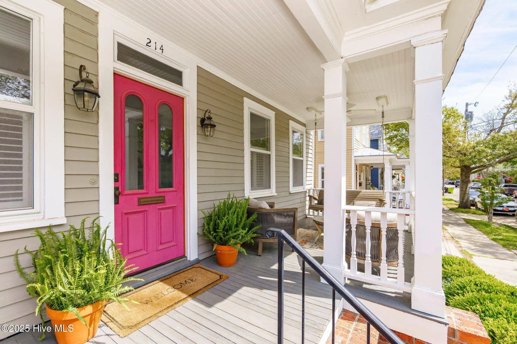 214 King Street | The Benjamin S. Guion House, ca. 1900 Experience the perfect blend of historic charm and modern elegance in the heart of New Bern's Historic District. This meticulously maintained 4-bedroom, 4-bath home features original wood floors, high ceilings, crown molding, chair rail, and Carolina shutters. A spacious front porch welcomes you inside to a gracious foyer, arched entryways, and double pocket doors leading to a light-filled living room with recessed lighting and a gas fireplace. The chef's kitchen boasts quartz countertops, white cabinetry, stainless steel appliances, a double oven, and a gas cooktop on a large center island—ideal for cooking and entertaining. A second gas fireplace and built-in shelving add warmth and function. The formal dining room features a third fireplace, and a full bath with custom walk-in shower completes the first floor. Upstairs, the primary suite offers a gas fireplace, walk-in closet, and ensuite bath with tiled walk-in shower. Two additional bedrooms, a full bath, and a laundry room complete the second level. The third floor is a versatile retreat with a full bath, reading nook, and home office potential. Enjoy a private, New Orleans-style brick courtyard with tiered copper fountain, pergola, custom lighting, wrought iron accents, and built-in seating—perfect for relaxing or entertaining outdoors.