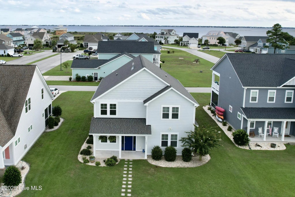 Spacious coastal cottage in the gated community of Bogue Watch with two primary bedrooms, each with a private bath—one on the main floor and one upstairs—offering comfort and privacy for guests, family, or multigenerational living. This 4-bedroom, 3.5-bath home blends modern convenience with classic coastal style, featuring an open kitchen, dining, and living area filled with natural light, a cozy fireplace, and charming details like cottage-style trim and pine stair treads. Upstairs, enjoy glimpses of the Intracoastal Waterway along with peaceful neighborhood views. Thoughtful upgrades include laundry hookups on both floors, a tankless gas water heater, water softener and dechlorinator, whole-house generator hook-up, dual-zone HVAC, and ample attic storage. The covered front porch is perfect for relaxing, while the rear-entry garage with alley access and a long driveway add both charm and function. Bogue Watch offers a marina, boat ramp, kayak launch, clubhouse, pool, playground, and a gated entrance—everything you need to enjoy the Crystal Coast lifestyle year-round.