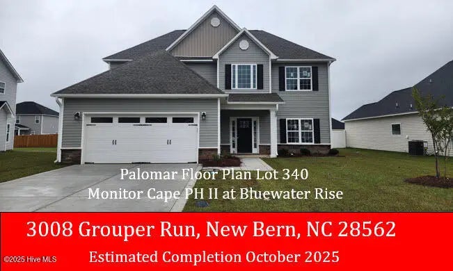 ''Palomar'' floor plan is ''Move-In Ready'' in Monitor Cape phase 2 of Bluewater Rise. Builder offering up to $10,000 buyer's closing cost assistance with use of preferred closing attorney & lender. This impressive floor plan features a two-story foyer entry, large family room, formal dining room, and open kitchen area w/ breakfast nook and keeping room w/ gas log fireplace. Granite counter tops & covered back porch. Quick commute to Cherry Point MCAS and Downtown New Bern.