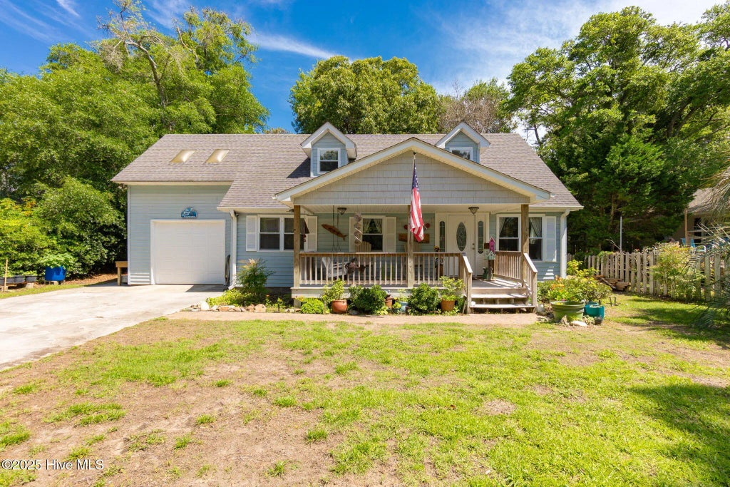Welcome to this beautifully maintained 4-bedroom, 2-bath coastal retreat nestled in the heart of Pine Knoll Shores, with canal access. Perfectly positioned to capture stunning views of Bogue Sound, this home offers both comfort and convenience with a touch of luxury. The spacious primary suite is thoughtfully set apart for privacy and features serene water views - the perfect spot to unwind at the end of the day. A second living area provides additional space for relaxing or entertaining guests, while multiple outdoor areas invite you to enjoy the coastal breeze and sunshine. Boating enthusiasts will appreciate the 7,000 lb boat lift, offering easy access to open water adventures. A large garage with space for a workshop provides ample storage and a place for projects or hobbies. Enjoy serene canal views from your own private porch off the spacious primary bedroom—perfect for morning coffee or relaxing evenings. Nestled in the desirable PKA Association, this home offers exclusive access to a host of private amenities, including an oceanfront park, tranquil canal front parks, and marina access for boating enthusiasts. Located just moments from the NC Aquarium, the public library, and the Country Club of the Crystal Coast, you'll have access to top-tier golfing and vibrant social opportunities. Whether you're looking for a full-time residence or a vacation retreat, this property combines the best of coastal charm and community living.