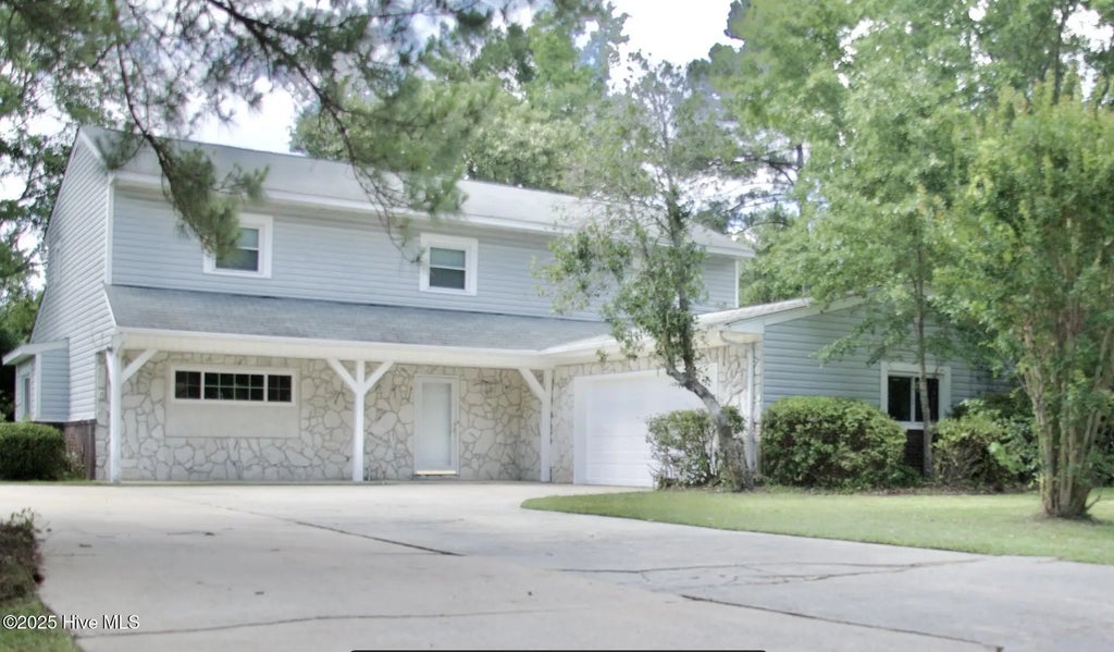 PRICE IMPROVED Exceptional Two-story Home featuring a stunning blend of Vinyl and Stone!! Boasting 5 Bedrooms, 1st Floor Bonus Room/Office, 2nd Floor Loft and 2.5 Bathrooms, this home has been thoughtfully designed to offer a Modern and Inviting atmosphere. The Heart of this home is the Newly Remodeled Open Kitchen and Dining Area complete with a Gorgeous Island providing Extra Seating, all New Counter Tops, Ample Cabinetry and clever Storage solutions. As you enter the Cozy Family room, you'll be captivated by the Exquisite Stone-styled Gas Log Fireplace, perfect for creating warm memories on those Chilly Carolina nights. Elevate your living experience with the breathtaking Second-floor Loft, featuring a striking Vaulted ceiling that creates a sense of spaciousness while overlooking the Living Room below. Step directly onto your Expansive Deck perfect for dining or outdoor gatherings where your fabulous Gazebo awaits, nestled among the lush trees for a serene retreat. This exceptional home is situated on a generous Corner Lot, complete with a Quad Driveway and Pad providing ample parking for Family and Friends. The Large Corner Lot and Vast Backyard offers endless possibilities for Landscaping, Gardening or creating a Play area for children and pets. The Massive Garage holds 2 Vehicles +Golf Cart or Motorcycle is not just for parking, it provides additional storage space for Tools & Sports equipment, keeping your home organized and clutter-free. Enjoy the perfect blend of convenience and tranquility in this remarkable property! Drive your Golf Cart across the street for a quick 18 holes! Be it Shopping, Dining, Movies or Military Base, its Right at your Fingertips!! HVAC w/Duct Work and Hot Water Heater...LESS THAN 4 YRS OLD! Entire Home Freshly Painted! New Flooring.