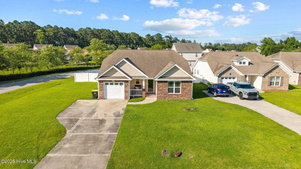 Welcome to 101 Falcon Landing Court, a beautifully maintained 3-bedroom, 2-bath home nestled on a quiet cul-de-sac in the desirable Falcon Bridge community! This move-in ready home features an open-concept layout with luxury vinyl plank flooring, vaulted ceilings, and a spacious kitchen complete with granite countertops, and a center island—perfect for entertaining. Enjoy the privacy of a fully fenced backyard, relax on the covered front porch, or unwind on the rear patio with views of the manicured lawn. The primary suite offers a walk-in closet and ensuite bath with a garden tub and separate shower. Additional highlights include a one-car attached garage, recessed lighting, and smart flow between living, dining, and outdoor spaces.