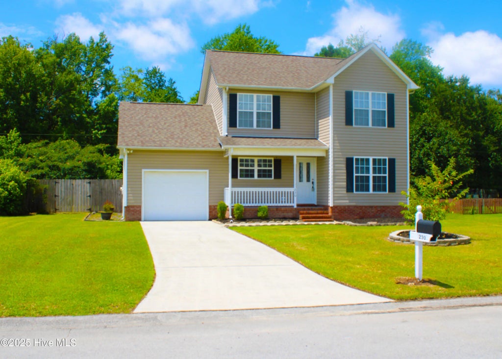 Price Improvement PLUS 1 Year Premium Home Warranty!!! Spacious 3- Bedroom Home Minutes from Amenities - No City Taxes! Discover Comfort, space, and convenience with this wonderful 3-bedroom, 2.5-bathroom home located in the desirable Bridlewood Subdivision with no HOA! Located just minutes from local schools, restaurants, and Camp Lejeune, this home sits outside city limits--saving you from city taxes! Step onto the welcoming covered front porch and explore the great layout that awaits. Just off the entry, you will find a versatile flex space perfect for your vision, whether it would be a formal dining room, home office, or playroom. On the opposite side, a functional kitchen with a pantry and a cozy dining area--ideal for everyday living. Down the hall, the spacious living room offers a perfect place to unwind or entertain, complete with a fireplace and access to the large deck. A conveniently placed half bath finishes off the first floor for added privacy and ease. Upstairs, enjoy the bonus of a laundry area (washer and dryer included!) and extra storage with two hall closets. The primary suite features a generous layout, a private en-suite and a large walk-in closet. Two additional bedrooms are comfortably sized and include oversized closets to meet all of your storage needs. An additional full bathroom in the hallway serves these rooms with ease. Step outside onto the expansive deck overlooking the private, fully fenced backyard--ideal for entertaining, pets, or relaxing outdoors. This wonderful home is Vacant and ready for New Owners (YOU)! Don't miss your chance--schedule your showing today!