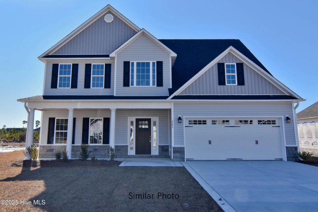 Welcome to the highly desired & popular community of Onslow Bay. Brand new construction built by Onslow County's most trusted & preferred builder. Onslow Bay is a hot spot, 3 miles to MCB Camp Lejeune's Piney Green gate, 14 miles to New River Air Station & minutes to area schools, shopping & dining. This beautiful neighborhood is sure to impress, complete with a clubhouse area & community pool. Welcome to the Catalina floor plan: 4 bedrooms, 2.5 baths, and approximately 2278 heated square feet. The exterior of this home boasts great curb appeal with an awesome covered front porch, modest landscape, and sodded front lawn. The front porch leads into an impressive 2-story foyer. The formal dining room is approximately 14x12; a great space to entertain on special occasions. The kitchen is perfect with beautiful, staggered flat-panel cabinets, stainless steel appliances, and an island for extra seating. The kitchen is also open to a breakfast nook and the living room. The living room features a ceiling fan and a cozy fireplace. Main level laundry room. All bedrooms are on the second floor. The master suite is approximately 17x16 and boasts a spotless master bath with a separate tub and shower, oversized bathtub and a true walk-in closet. This charming floorplan is also complete with a 2-car garage. Call today to view! NOTE: Floor plan renderings are similar and solely representational. Measurements, elevations, and specs may vary in final construction. Limited selections for buyer to choose. Call L/A to verify.