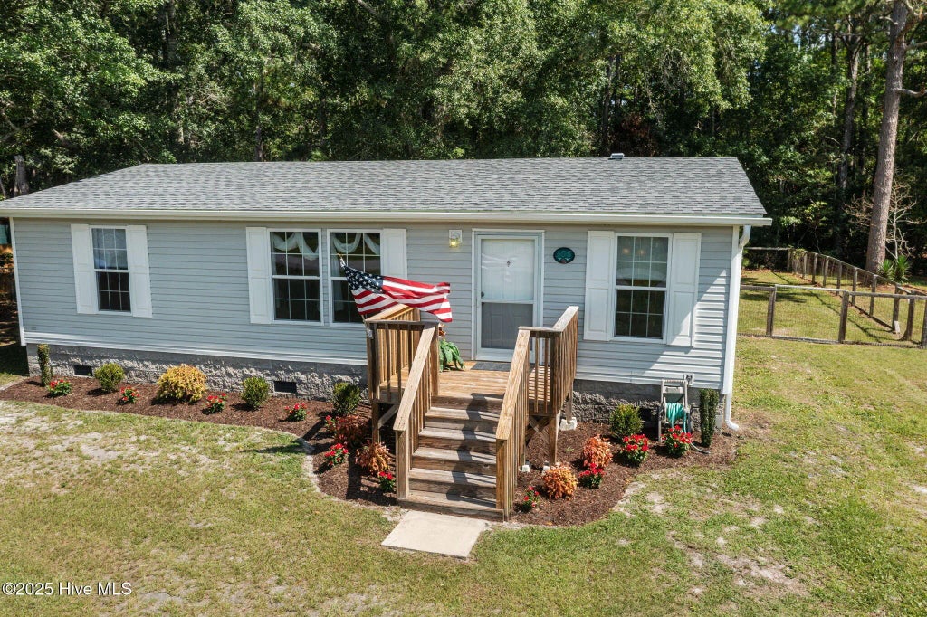 NOW AVAILABLE - AFFORDABLE, FRESHLY PAINTED HOME WITH ALL NEW LVP FLOORING AND CARPET THROUGHOUT. The light and bright living room is flanked by two large principal suites, each with full bathrooms and walk in closets. In the kitchen, you'll find ample cabinetry and stainless steel appliances. Outside, there is a fully fenced back yard that has a storage building with a lean to backing up to a large wooded tract. New roof installed in 2025. This home sits inside the Croatan district, with multiple award winning schools. Just 10 minutes to the Morehead City NC Wildlife boat ramp and 15 minutes to Atlantic Beach.