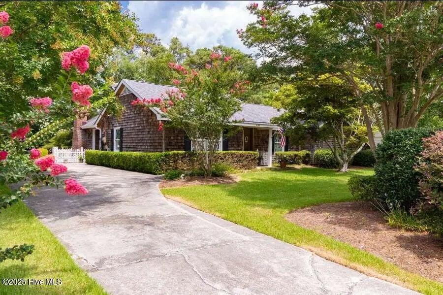 Charming 3 bedroom, 2 bath cottage style home offering 1,810 square feet of comfortable single story living on a spacious half-acre lot. Enjoy the beautifully landscaped and fully fenced backyard with brick walkways, a storage shed, and a lovely patio perfect for relaxing or entertaining. Inside, you'll find hardwood floors run throughout much of the home, complemented by carpeted bedrooms and a tiled primary bathroom. A gas fireplace and a skylight add character and natural light to the den. Just off the den is a 150 square foot enclosed sunroom that adds extra space to unwind (not included in heated sq. ft.). Conveniently located near the hospital, shopping, beaches and sound access--this home offers comfort, style, and convenience. Has septic tank/water well