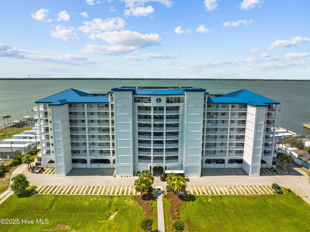 Epic Water Views from Every Angle at The Nautical Club, Indian Beach: This top-floor, end-unit, 3-bedroom, 3-bath sound front condo at The Nautical Club offers breathtaking panoramic views of Bogue Sound, the Intracoastal Waterway, and even the Atlantic Ocean from the covered southside porch. As the largest floor plan in the community, this residence features high-end finishes including vaulted ceilings (found only in end units), granite countertops, luxury flooring, tray ceilings, crown molding, accent lighting, tiled baths, walk-in closets, laundry room and a gourmet kitchen designed for entertaining. Enjoy outdoor living from the expansive wraparound balcony, perfect for relaxing or dining al fresco while taking in the incredible water views. Resort-style amenities include an outdoor pool, 8th-floor clubhouse with event space and sweeping views, fitness room, game room, library, kayak launch, boat ramp, on-site boat storage, and a newly constructed pier on Bogue Sound. Don't miss this rare opportunity to own a luxury waterfront condo that blends elegance, comfort, and an unbeatable coastal lifestyle. Schedule your tour today!