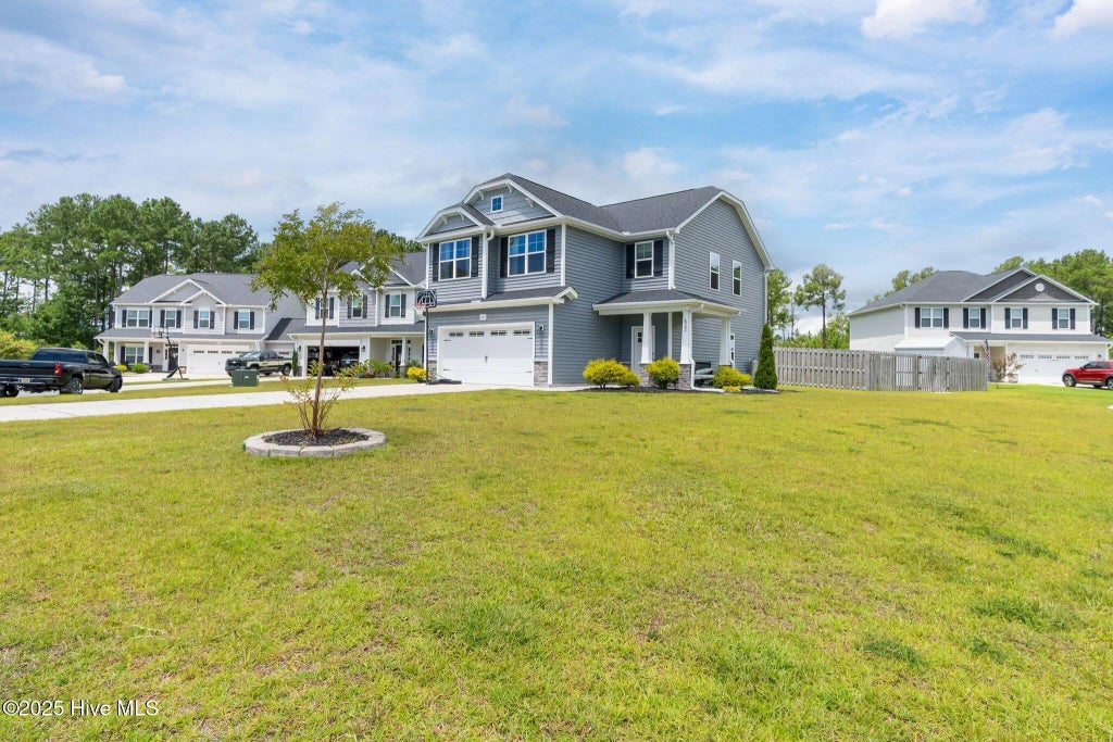 Welcome to this beautiful 4-bedroom, 2.5-bathroom two-story home in the desirable Oyster Landing community of Sneads Ferry! With ample square footage of well-designed living space, this home offers comfort, style, and convenience. The spacious eat-in kitchen features granite countertops and opens to a cozy living area with a gas fireplace—perfect for relaxing or entertaining. Upstairs, the generous primary suite includes a walk-in closet and a luxurious en suite bath with a garden tub and double vanity. Two of the additional bedrooms also offer walk-in closets, providing ample storage. Step outside to enjoy the fully fenced backyard, complete with a wood privacy fence and a shed for extra storage. Ideally located just minutes from Camp Lejeune, Stone Bay, and Courthouse Bay, this home is perfect for anyone seeking a serene coastal lifestyle with close access to base amenities. Don't miss your chance to own this inviting home in one of Sneads Ferry's sought-after neighborhoods! Don't miss out on $8,000 USE AS YOU CHOOSE!