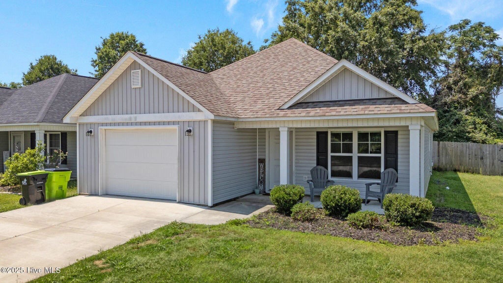 Adorable West Crossroads home available for new owners!! Home offers an open floor plan with cathedral ceiling in the living room, dining room and kitchen. This home features LVP flooring, granite countertops, natural gas tankless water heater and gas fireplace logs. The kitchen has lots of cabinet space in addition to a center island with space for bar stools. Built In Microwave and Dishwasher replaced in 2024. Walk in pantry for lots of extra storage. The spacious master en suite has a walk in closet, double vanities, step in shower and linen closet. At a separate hallway from the master are two guest bedrooms, full hall bathroom, linen closet, coat closet and laundry room. The garage provides storage space and a pull down attic staircase. The backyard is completely fenced in with a wood privacy fence. This home is close to the Hwy 70 corridor, so commuting east or west is convenient and minutes away from downtown New Bern!