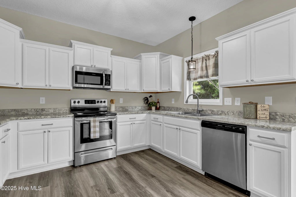Welcome to 4029 Hunters Trail, a beautifully updated 4-bedroom, 2.5-bath home perfectly situated on a 0.32-acre lot in Jacksonville. With 1,713 square feet of thoughtfully designed living space, this turn-key property blends timeless charm with modern upgrades. Inside, you'll find fresh new LVP flooring, plush new carpet, and a bright, open layout filled with natural light. The living room features a cozy fireplace and flows seamlessly into the dining area, enhanced by upgraded lighting. The refinished kitchen boasts stainless steel appliances, crisp white cabinetry, and stylish countertops—perfect for both everyday living and entertaining. Practicality meets style in the mudroom, complete with a custom built-in hall tree, and a dedicated laundry room makes household tasks a breeze. Upstairs, spacious bedrooms showcase unique touches like paneled accent walls, massive walk-in closet and crisp en suite bathroom. There is so much warmth and character. 3 additional bedrooms freshly painted with new carpeting separate from the primary suite is perfect for those looking for privacy. This home is move-in ready and designed for comfort, style, and ease of living.