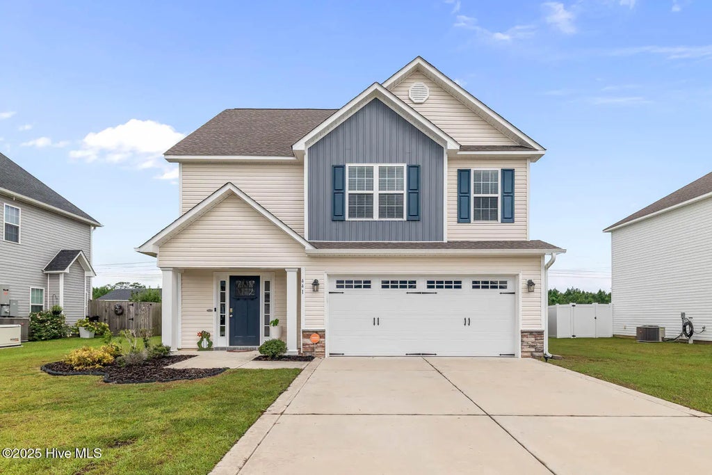 Welcome to Onslow Bay! This sought-after community offers a neighborhood pool, clubhouse, ponds, and sidewalks; all just minutes from Camp Lejeune, schools, shopping, and dining. Step inside this two charming two-story home built in 2020, offering 3 bedrooms, 2.5 bathrooms, and a 2-car garage with approximately 1,765 heated square feet. The foyer opens into the spacious family room, complete with a cozy electric fireplace with marble surround and custom mantle. The open layout flows seamlessly to the dining area and kitchen. The kitchen is equipped with stainless steel appliances, granite countertops, a pantry, and plenty of cabinet space. A laundry room, coat closet, and half bath complete the first floor. Upstairs, you'll find a generous primary suite featuring a ceiling fan, oversized walk-in closet, and a spa-like bathroom with a double vanity, oversized soaking tub, and separate shower. Two additional bedrooms, each with spacious closets, plus a full guest bath round out the second floor. Other highlights include LVP flooring throughout the main living areas and a fully fenced backyard; ready for summer evenings or weekend BBQs. Meticulously maintained and move-in ready, this home is waiting for its next owner. Don't miss your chance to live in one of Jacksonville's most desirable neighborhoods.. schedule your showing today!