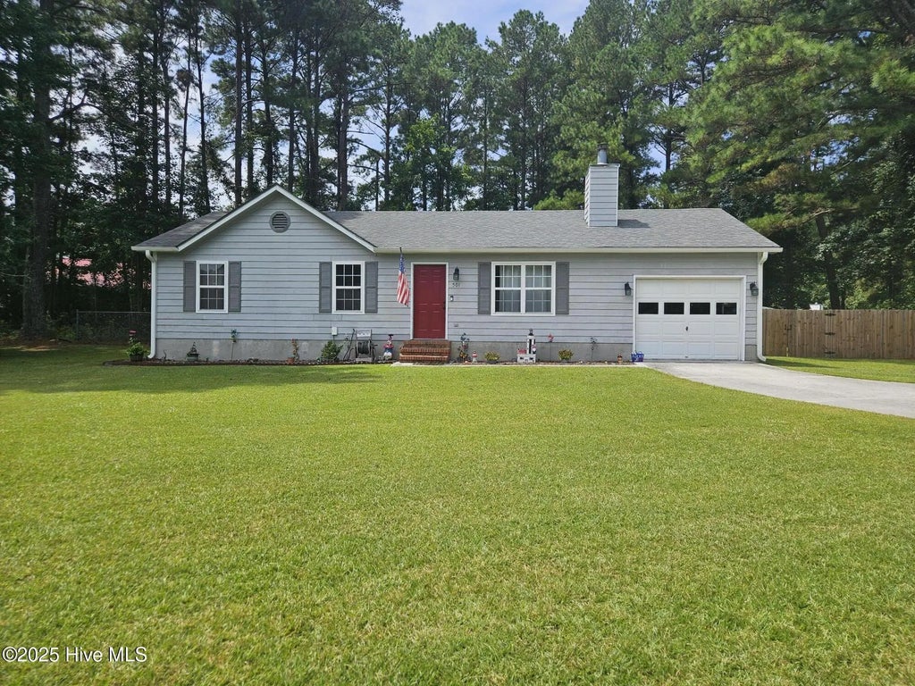 5.75 PERCENT VA Assumable Loan with reduced closing costs. Save with NO CITY TAXES and NO HOA! This 1,134 SQFT 3 bedroom, 2 bath home has a living room with vaulted ceilings and fireplace. The Primary bedroom comes with an ensuite bathroom and walk in closet. You may enjoy hosting large gatherings in your large .6 acre corner lot that includes a fully fenced backyard that is shaded with an open patio area. Above ground pool may convey to new buyers. HVAC replaced in 2020, roof replaced 2018. Short commute to both Camp Lejeune's Wilson gate and MCAS New River.