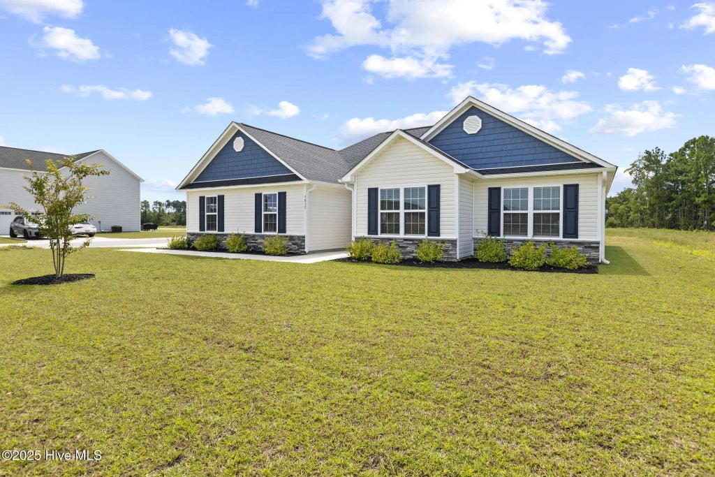 Welcome to this stunning 3 bedroom, 2 bath single-story home perfectly situated on a desirable corner lot in the highly sought-after Stateside neighborhood. Built in 2024, this home offers modern design and thoughtful details throughout. Step inside to find an open split floor plan with beautiful LVP flooring, vaulted ceiling, and an abundance of natural light that enhances the home's bright and airy feel. The spacious living room features a cozy fireplace, making it perfect for relaxing evenings or entertaining guests. The kitchen seamlessly connects to the main living areas, providing both functionality and style. The primary suite is a private retreat with a spa-inspired bathroom complete with a walk-in shower, a soaking tub, and dual vanities. Additional highlights include a side-entry garage, plenty of storage space, and access to the community's resort-style pool. This home truly has it all—style, comfort, and location—making it the perfect place to call home!