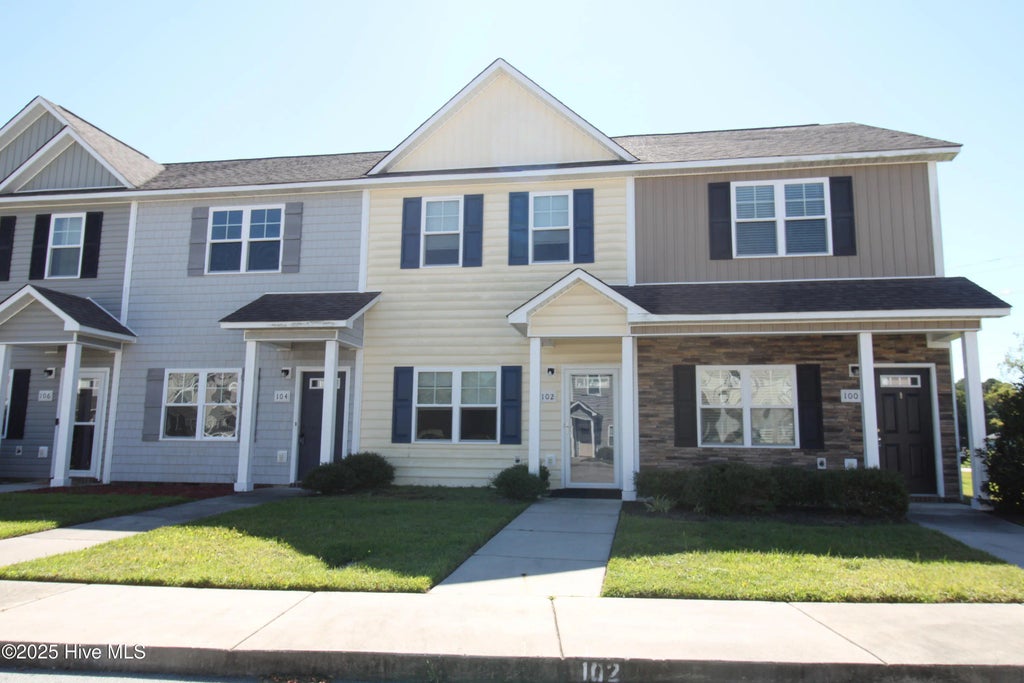 Charming southern beach town, with a short drive to the beaches, shopping and marinas. This home offers two bedrooms each with a private full bath, and powder room on the first floor and laundry on the second floor. Easy to care for LVP flooring on both levels of the home. The kitchen features granite countertops, newer stainless steel appliances, the dishwasher has a third rack and the refrigerator is included. Do you have a Fur Baby? The back yard is fenced-in and has easy to clean astroturf. There is also a Bark Park just down Justice Farm Drive for your convenience. The HVAC was replaced in Fall 2024. Close to Camp LeJeune and Stone Bay bases, easy access to Jacksonville and Wilmington!