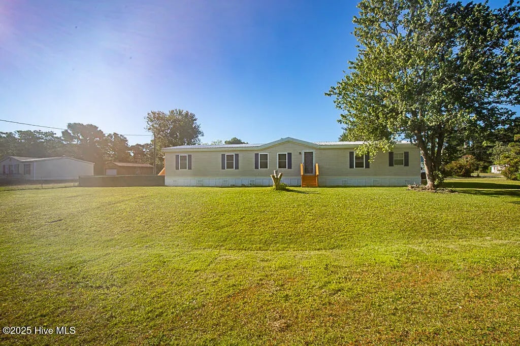 Charming ranch-style home set on a permanent foundation on a spacious corner lot in the Paradise East subdivision. Situated on .64 acres, this 2-bedroom, 2-bathroom residence offers comfort and functionality. Step inside to your left you will find a front room that can serve as a dining area or multipurpose space to fit your lifestyle. The sliding doors on your right will take you to another multipurpose room that could be great for an office, playroom or extra storage! The home features includes a handicap-accessible wing with its own separate entry, wide hallways, and a full accessible bath, providing versatility and ease of living. As you continue into the main living space the floor plan opens up. The living room hosts a corner fireplace and recessed lighting creating a warm and inviting atmosphere. The kitchen stands out with floor-to-ceiling built-ins that maximize storage, stainless steel appliances and a generous breakfast bar make this space as practical as it is welcoming. The primary bedroom includes a walk-in closet and an en suite bath with a walk-in shower. There is an additional bedroom with access to another full sized bathroom. You have a covered porch out back and a fully fenced rear yard ideal for pets or outdoor gatherings. In addition the detached metal garage offers space for storage, hobbies, or even a man cave. Less than 20 minutes to downtown Morehead City with the areas best dining and shopping and Crystal Coast Beaches!