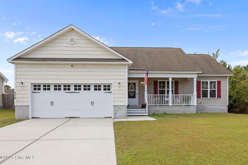 Welcome to this charming home in a water-access neighborhood offering a boat ramp, day dock, dog park, and scenic sidewalks along the banks of the New River—all on Jacksonville's east side and close to shopping and dining, with no city taxes. A cozy front porch greets you, the perfect spot to relax and unwind. Step inside to an open floor plan highlighted by vaulted ceilings and durable LVP flooring. The kitchen features rich dark wood cabinetry, a stylish tile backsplash, a new Range, and plenty of room for a formal dining set. On the right side of the home, you'll find the laundry closet conveniently located in the hall, two spacious spare bedrooms, a guest bath, and the master suite complete with tray ceilings and a private bath. Out back, enjoy a fully fenced yard offering both privacy and space to entertain. A covered back porch with pull down shades. HVAC is just a couple years old.