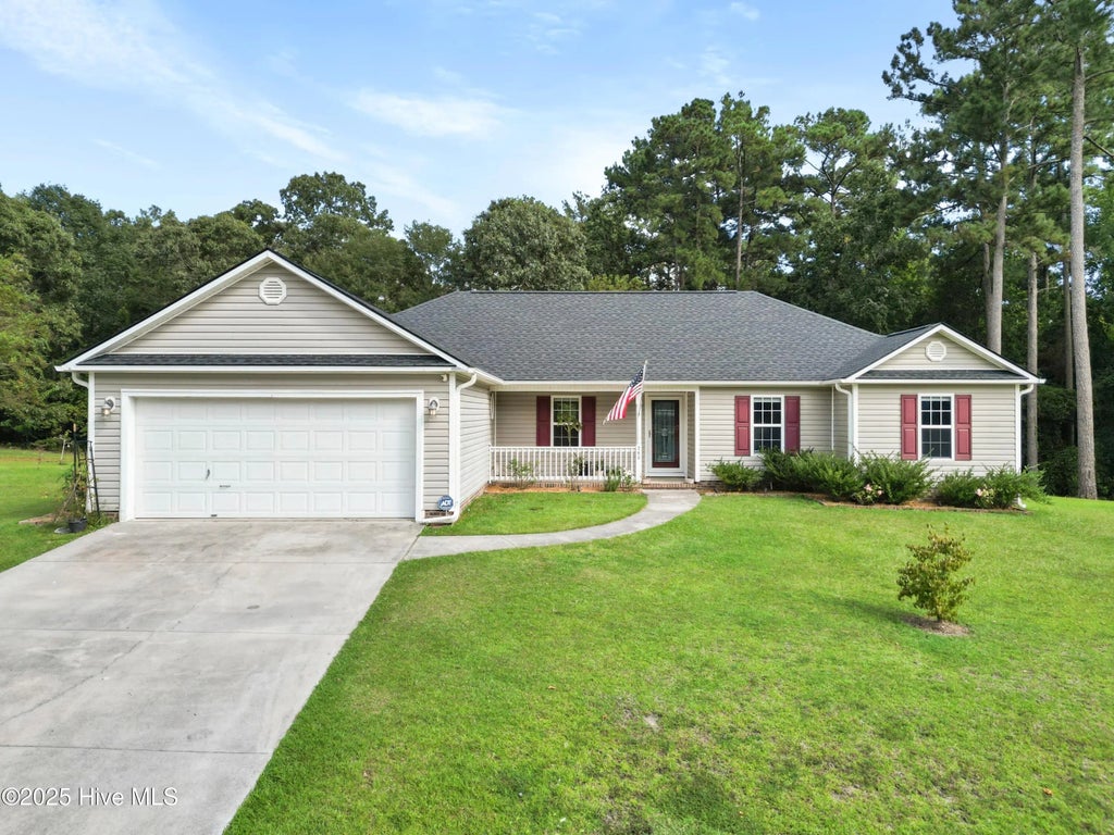 Looking for tranquility, location, space to grow and charming features all under one brand NEW ROOF? This is the one, at a perfect price point on a wooded acre corner lot! This FOUR bedroom home with an upgraded new HVAC and new water heater, has a split floor plan for extra privacy and spacious layout. There are TWO living spaces! Enjoy movies on the big screen right in your open living room with the hardwired projector or curl up next to the fireplace in your second ''great room'' off the garage. You'll love the freshly painted accent wall in the spacious primary room and the designated ''dark room'' for exceptional sleep. Fresh, clean air is easy with the newly installed whole house fan- circulating stale air, reducing allergens and cutting energy costs. There is plenty of yard space for gardeners and green thumbs here. Perfect location with no city taxes. Check out the gorgeous pictures, but the best way to view is definitely in person!