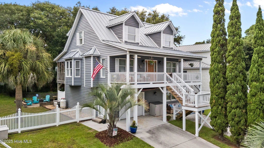 Experience timeless coastal elegance in this beautifully appointed 4-bedroom, 3-bath home located in the sought-after gated community of Cape Emerald in Emerald Isle. Perfectly situated on an elevated lot over 20 feet above sea level, no flood insurance required. This residence captures the essence of relaxed island living with its light, airy design and inviting coastal finishes. From the charming front porch, step inside to an open-concept great room with soaring vaulted ceilings and abundant natural light that create a bright, breezy atmosphere ideal for gatherings. The flexible floor plan includes a versatile bonus room perfect for a home office, guest suite, or personal retreat. Outdoor living shines with a private back porch and spacious patio ideal for morning coffee, cookouts, or simply soaking in the island breeze. The Cape Emerald neighborhood offers exclusive amenities including a day dock, tennis courts, and an indoor pool, all just moments from the beach. Public beach access with golf cart parking is conveniently located across the street from the neighborhood entrance. This Emerald Isle retreat is ready to welcome you home to comfort, style, and serenity.