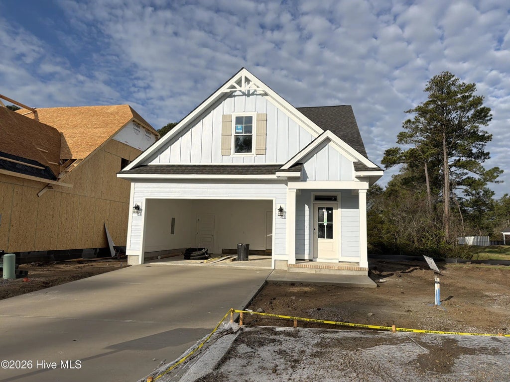 Welcome to Beau Coast West where you'll find homes built by an award-winning builder. This newly constructed home will offer an attached 2-car garage with interior features that include 9' ceilings, crown molding in main living areas and master bedroom, luxury vinyl tile in 1st floor common areas, laundry, and bathrooms. Kitchen features to include sleek quartz counter tops, under-counter mounted stainless steel sink, stainless appliance package that includes electric range, dishwasher & microwave as well as a kitchen peninsula-style bar with dining area. 1st floor master bedroom will feature a large walk-in closet, ceiling fan, and crown molding. Stylish master bath includes double vanity, fully tiled walk-in shower, and quartz counters with plenty of storage space. Living Room features include an open concept space with lots of windows to allow an abundance of natural light, complete with ceiling fan, gas fire place, and doors leading onto the covered porch to enjoy those beautiful Beaufort evenings. Double hardy siding, fully sodded lawn w/irrigation, and whole house gutters along with a Quality Builder's Warranty are included for that extra peace of mind. Beau Coast West is inspired by the low-country life style found along the Southern Outer Banks of North Carolina. There is something for everyone here including a stunning clubhouse with resort-style pool complete with water slide and splash pad. Also included for residents will be pickleball courts and a fitness center for those who like to stay active. For low-maintenance living with endless year-round activities such as walking trails, turtle ponds, nearby city park, biking and golfcart friendly access, close proximity to historic downtown Beaufort speckled with quaint local shops and eateries why would you want to live, play, or relax anywhere else along the Crystal Coast.